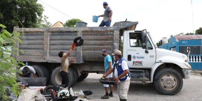 -Entre el sábado y el domingo se recolectaron más de 480 toneladas de cacharros y recipientes que acumulan agua en colonias y comisarías del sur y norte de la capital yucateca.