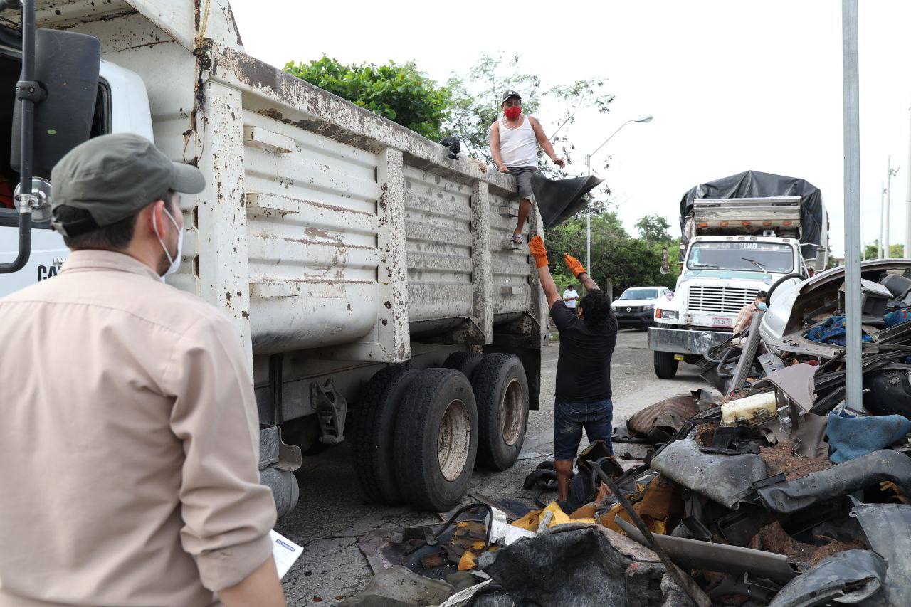 Mérida, Yucatán, 21 de junio de 2021.- Buena participación ciudadana se registró durante las jornadas de la Campaña de Descacharrización 2021 que se realizaron ayer sábado y hoy domingo en colonias y comisarías de Mérida, en donde hasta el corte de las 6 de la tarde, se recolectaron más de 480 toneladas de cacharros y recipientes que acumulan agua, como parte de las acciones que contribuyen a evitar la reproducción del mosco transmisor del dengue, zika y chikungunya.
