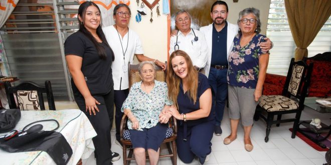Mérida, Yucatán a 21 de abril de 2025.- Debido a la importancia del cuidado de la salud en la construcción de la justicia social, la Presidenta Municipal Cecilia Patrón Laviada supervisó la atención a Genny Mendoza Silveira con el programa Médico a Domicilio, en el fraccionamiento Chenkú.
