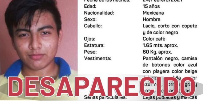 MÉRIDA, Yuc., 27 de febrero 2021.- El adolescente de 15 años Ángel Emmanuel Castro Chan, se encuentra desaparecido desde el pasado miércoles 24 de febrero, cuando salió de su casa en el fraccionamiento Santa Ana de Kanasín.