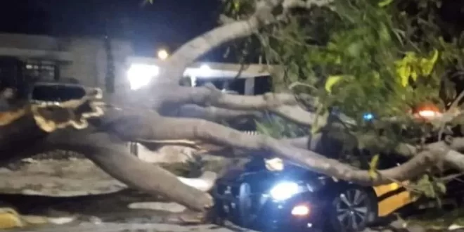 MÉRIDA, Yuc., 13 de diciembre 2023.- Gran sorpresa causó la caída de un árbol sobre una patrulla que se encontraba estacionado sobre la avenida Itzaes dejando graves daños a la unidad de la corporación.