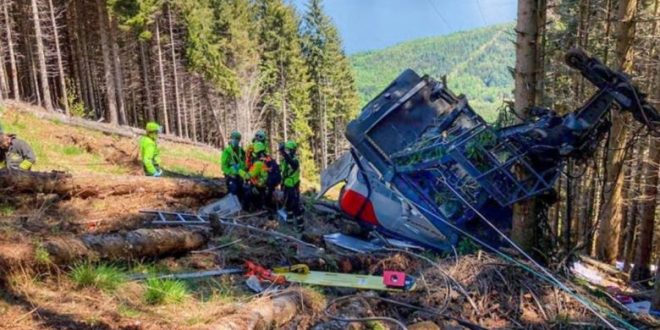 Trece personas fallecieron, luego de que se precipitara al vacío una cabina de teleférico alpino que conectaba las estaciones de Stresa y Mottarone, en la región italiana de Piamonte.