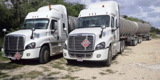 Debido a la falta de los documentos de registro de hidrocarburo, los dos operadores de tráiler fueron detenidos por presunto “huachicol” y los vehículos con su respectiva carga llevados a las instalaciones de la Fiscalía. Información Novedades Yucatán