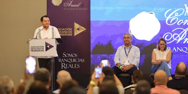 “Estoy seguro de que ustedes, como franquiciantes que han logrado comercializar productos y marcas que ya representan el 5% del Producto Interno Bruto del país, serán bien recibidos en Yucatán. Este estado los recibe con las puertas abiertas, con miras a que el Renacimiento Maya permita que todas las comunidades de la entidad reciban los beneficios de la derrama económica”, subrayó Díaz Mena.