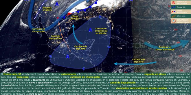 El ingreso de aire marítimo tropical en interacción con el calentamiento diurno, darán origen a lluvias aisladas en el oriente y noreste de Yucatán, así como en el norte, costa centro y sur de Quintana Roo. Además, el viento continuará del este-sureste con rachas de 60 km/h; en cuanto al ambiente será muy caluroso a extremadamente caluroso en el día y cálido al amanecer.