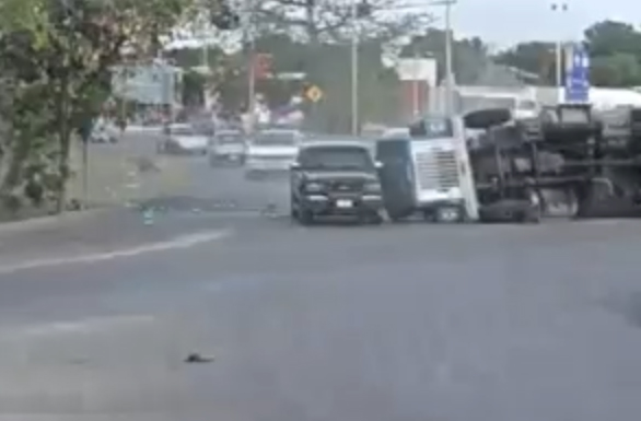 Los hechos ocurrieron en el Km. 17 cruce carretera a Valladolid, donde se mantienen los trabajos y maniobras para levantar la pesada unidad, por fortuna no hay lesionados.
