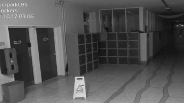 Sin embargo en el casi minuto y medio de la grabación la actividad paranormal no termina ahí; segundos más tarde una de las puertas de los casilleros se abre y salen disparadas unas hojas, al final, cae un letrero de precaución como si alguien lo hubiera pateado.
