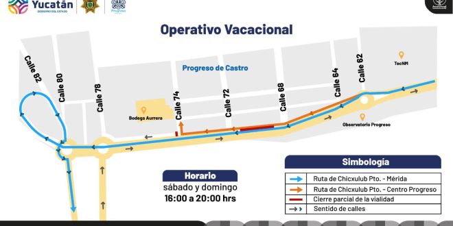 Mérida, Yucatán, 22 de julio de 2023.- El Gobierno del Estado, a través de la Secretaría de Seguridad Pública (SSP), en coordinación con el Ayuntamiento de Progreso, mantendrán un operativo de vialidad para dar seguridad y fluidez al tránsito en la zona.