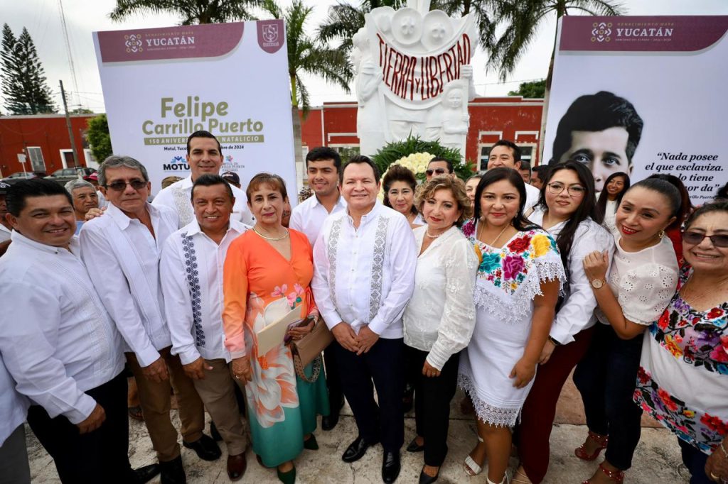 “Felipe Carrillo Puerto nos enseñó que los cambios más profundos no se logran en solitario. Su legado es testimonio de un trabajo conjunto entre las comunidades, los líderes de su época y el gobierno que encabezó. Por ello, nuestro compromiso es fortalecer, como él lo hizo, la educación e impulsar una sociedad que conozca su historia y que tenga la capacidad de transformar su futuro”, afirmó el Gobernador, en presencia de Liz Elba Carrillo Gómez, sobrina nieta del conmemorado.