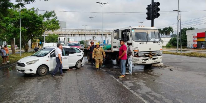 Todos menos el camión a cargo de A. A. P. de 26 años, que por más que piso el freno al fondo, el peso de la unidad le ganó y terminó por impactarse en la parte trasera de un automóvil Figo, que en ese momento se había detenido a esperar la luz verde de preferencia de paso.