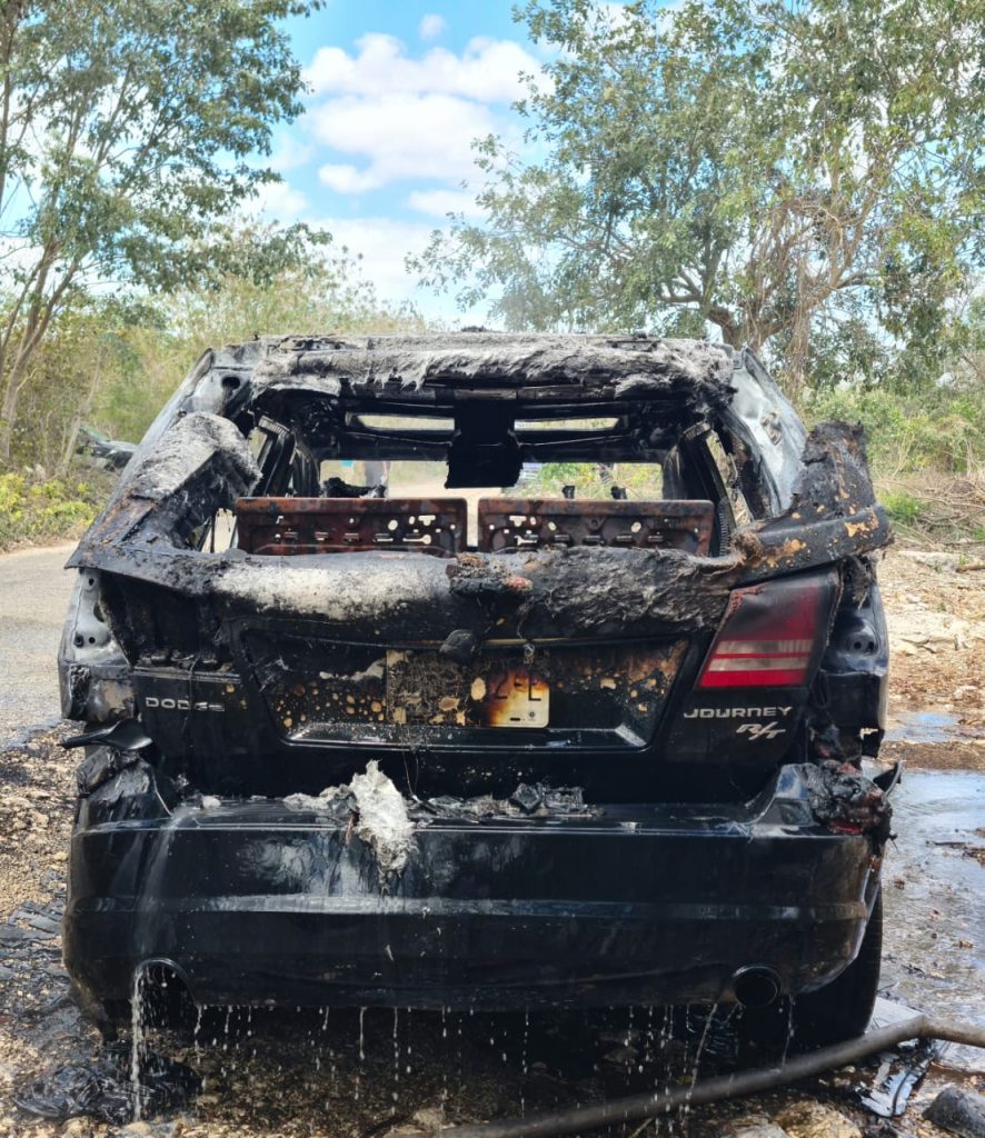 KINCHIL, Yuc., 29 de febrero 2024.- Un voraz incendio de una camioneta Dodge Journey se suscitó poco antes de este mediodía en el antiguo camino que comunica este municipio con Tedzidz.