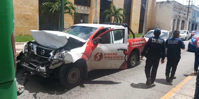Mérida, Yucatán a 22 de agosto de 2023.- La Policía Municipal de Mérida tomó conocimiento hoy a las 10:36 horas de un hecho de tránsito en la calle 57 entre 50ª y 52, en el que estuvieron involucrados el autobús línea SITUR y la camioneta placas YT-3221-C, conducidos por Jorge G. T. y Jonatan Ch. L., respectivamente.