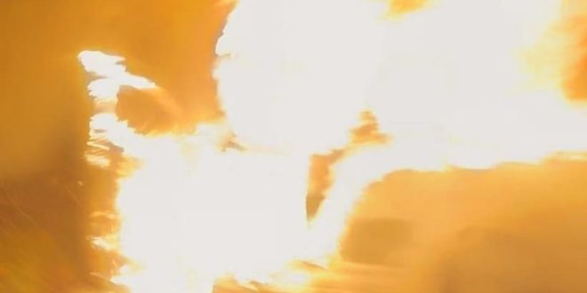 Celestún, Yuc., a 13 de abril 2024.- Una camioneta Courier terminó envuelto en llamas a causa de un posible cortocircuito cerca de la medianoche de ayer jueves, justo antes de ingresar a este municipio costero.