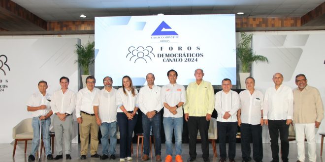 MÉRIDA, Yuc., 15 de mayo 2024.- Durante el tercer encuentro de los Foros Democráticos CANACO 2024 Los candidatos a la alcaldía de Mérida se comprometieron con el sector empresarial a trabajar en el tema del ambulantaje, la mejora en los sistemas digitales del ayuntamiento para la realización de trámites de apertura rápida de empresas, la movilidad, infraestructura, el fomento al turismo y mejoras en calles y colonias de la capital del estado.