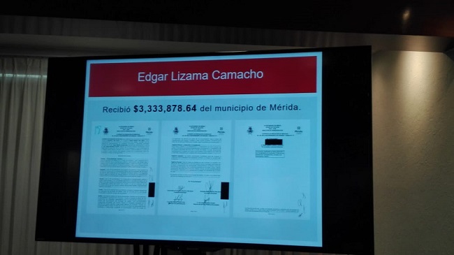 En conferencia de prensa en conocido hotel de Mérida, Castro Vázquez ex presidente de la Comisión de Transparencia y Anticorrupción del Congreso de la Unión señaló que, en el caso de Edgar Lizama Camacho alias” Lero”, candidato a la alcaldía de Dzilam González, quien aún tiene un contrato vigente hasta 2018 con el Ayuntamiento de Mérida, recibió recursos por 3 millones 333 mil pesos durante 2016 y 2017.