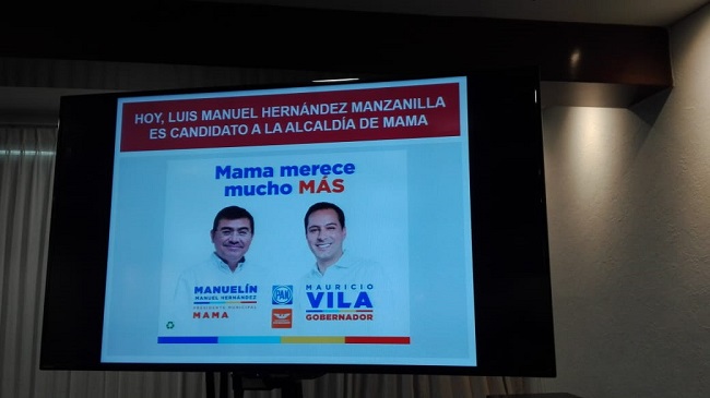 Acompañado por Mario Mex Albornoz diputado federal de Morena, el candidato al senado también mencionó que Mauricio Vila Dosal también benefició al panista y ex empleado del Ayuntamiento de Mérida Luis Manuel Hernández Manzanilla, candidato a presidente municipal del municipio de Mama, quien obtuvo más de un millón 435 mil pesos, hecho que calificó como grave.