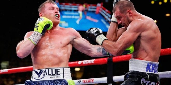 Álvarez (53-1-2, 36 KO’s) celebró 14 años como boxeador profesional con el título Semicompleto de la OMB que le arrebató al ruso Sergey Kovalev (34-4-1, 29 KO’s). El púgil mexicano inició la batalla de manera estratégica, estudiando a su rival quien es más alto y pesado y para el segundo round comenzó a meter los golpes en su presa, mientras Canelo ataca, Kovalev responde.