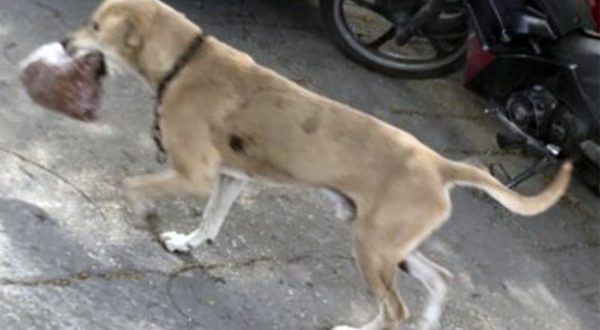 Personas que vieron al perro con su botín no dejaban de reír y de comentar que con el hambre no se juega y uno es capaz de hacer lo que sea con tal de comer. Información Diario de Yucatán