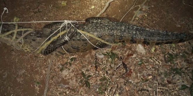 Home / Destacada policía / Captan a cocodrilo deambulando en un rancho de Kinchil