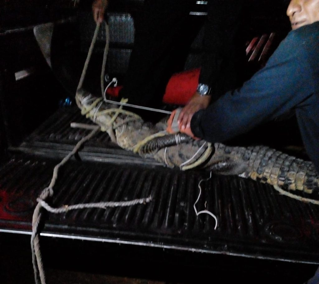 Juan Pech Poot (a) “Don Boa” iba a revisar su pequeño rancho ubicado por camino a esta comisaría, cuando escuchó que se mueva algo entre la vegetación. Tras alumbrar se dio cuenta de un cocodrilo de casi metro y medio.