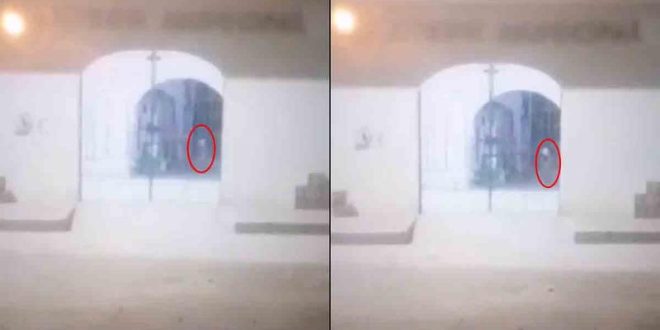 Mediante una camara de vigilancia se capta alrededor de las 9:20 de la noche a una niña jugando en el pasillo del panteón municipal de Santiago Miahuatlán.