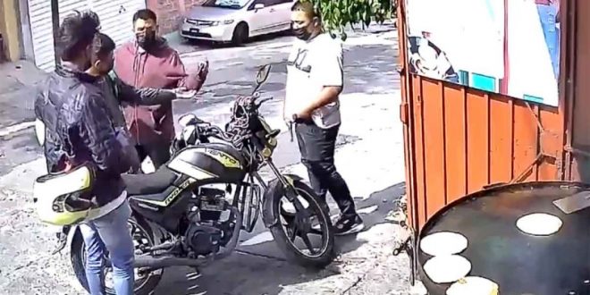 En las imágenes se observa a tres hombres que se acercan a la víctima quien está acompañada por otro motociclista.