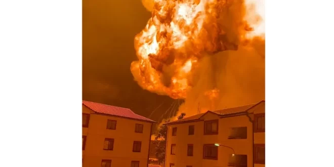 Según autoridades, un camión que estaba cargado con gas explotó, provocando una enorme bola de fuego que se extendió ampliamente