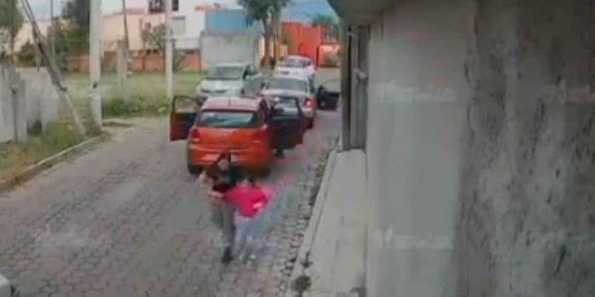 Circula en redes sociales un video en donde se ve el presunto secuestro de una niña en Tlaxcala.