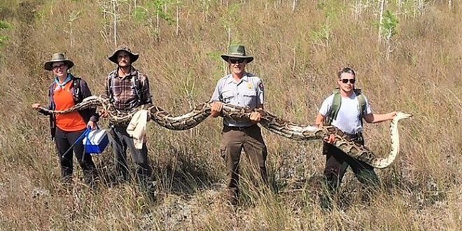 Es una de las pitones más grandes jamás capturadas en el sur de Florida, según esta reserva situada al norte del Parque Everglades.