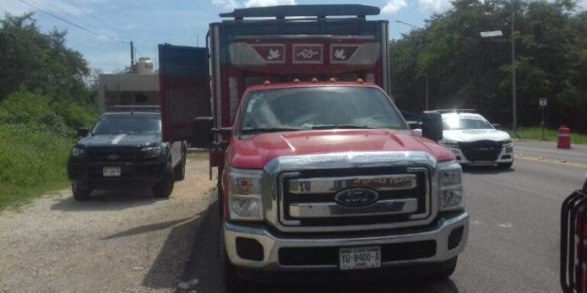El vehículo de carga era un Ford 350 de color rojo con placas YU-8400-A de Yucatán y llevaba más de 50 cajas de cerveza.