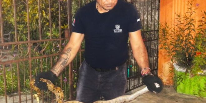 MOTUL, Yuc., 12 de agosto 2023.- Anteanoche jueves, cerca de las 10, elementos de Protección Civil atendieron el reporte de una serpiente hallada en el domicilio del ciudadano Renán Ramírez, ubicado en la calle 26 entre 33 y 35 número 332-C.