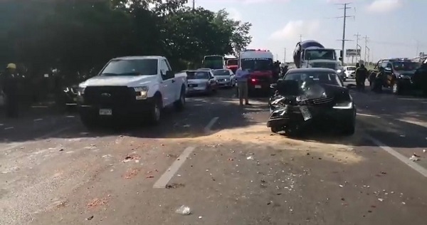 MÉRIDA, Yuc., 01 de octubre de 2019.- El mes de octubre abrió el telón en Yucatán, con una carambola en la que fueron protagonistas cuatro vehículos en la carretera Mérida-Progreso. Por fortuna no hubo lesionados, todo quedó en cuantiosos daños materiales.