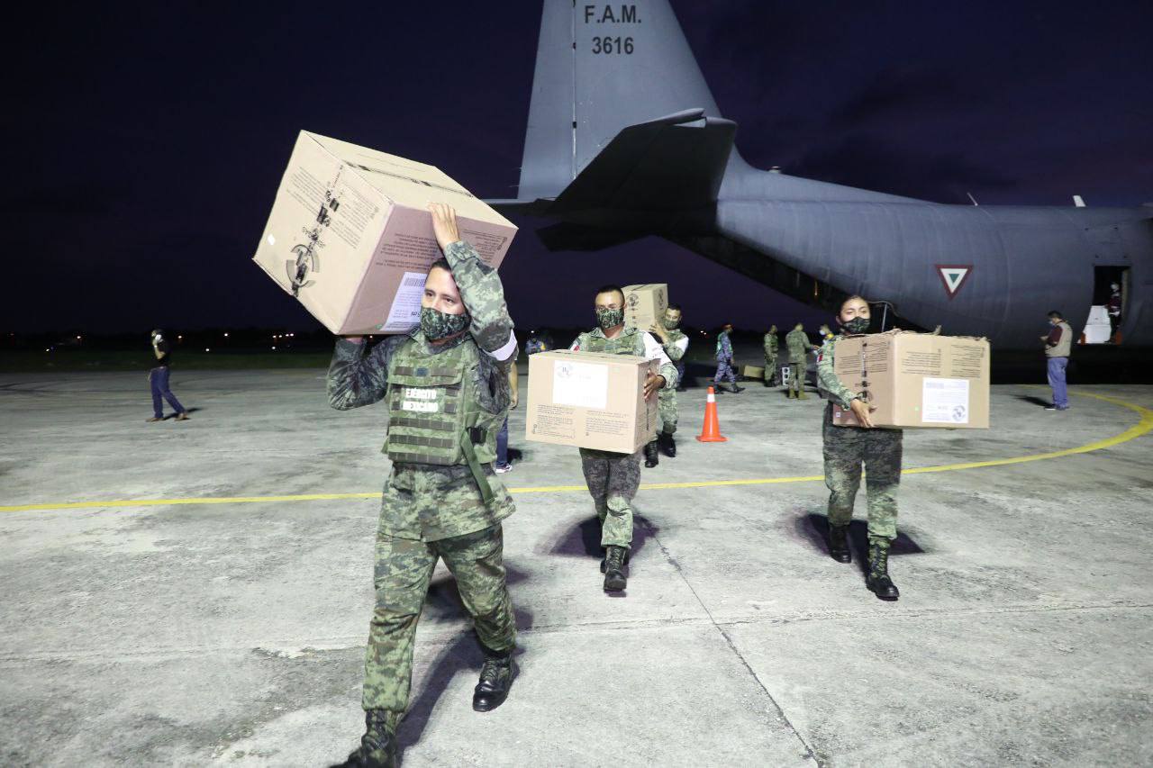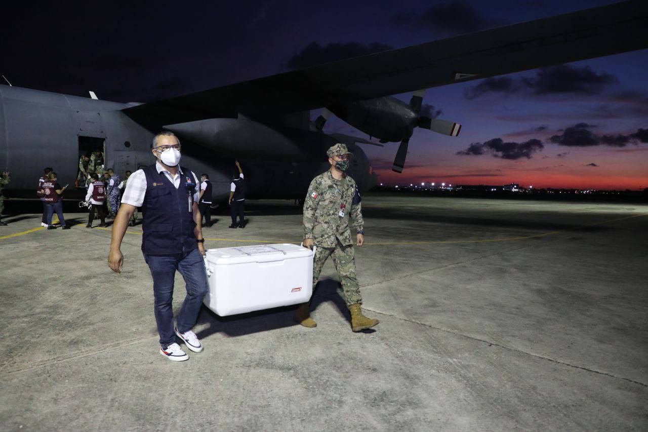 Por instrucciones del Gobernador Mauricio Vila Dosal, el subdirector de Salud Pública de la SSY, Carlos Isaac Hernández Fuentes, acudió a la Base Aérea Militar (BAM) Número 8 para supervisar la llegada del nuevo lote de vacunas, que arribó a bordo de una aeronave Hércules de la Fuerza Aérea Mexicana matrícula 3616, proveniente de la Ciudad de México, que tocó territorio estatal a las 19:50 horas.