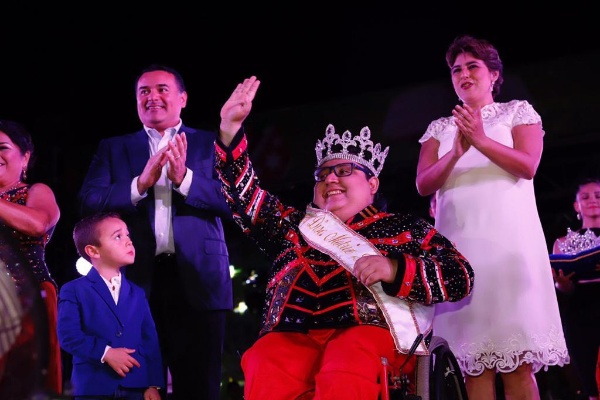 Y los reyes con discapacidad motriz, Cynthia Paola Rincón Sánchez “ Cynthia I” y Jesús Alberto García Castillo “Chucho I” fueron coronados por el secretario ejecutivo del Comité Permanente del Carnaval de Mérida y la síndico municipal, Diana Canto Moreno.