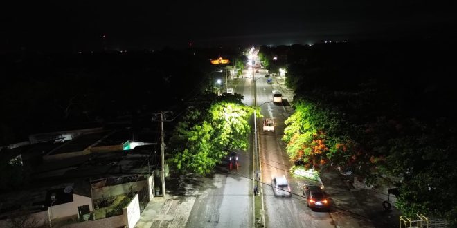 Se iluminan más de 1900 metros lineales de una de las avenidas más transitadas e importantes en Umán.