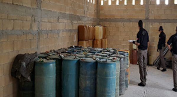 Elementos de la Agencia de Investigación Criminal (AIC) y peritos adscritos a la Delegación Estatal de la PGR, con el apoyo del Cuerpo de Siniestros y Rescate de la Secretaría de Seguridad Pública Estatal (SSP), Secretaría de Defensa Nacional (SEDENA) y Policía Federal (PF), el lugar fue inspeccionado, localizando y asegurando un total de 11 mil 800 litros de hidrocarburo, distribuidos en diversos contenedores, tambos y bidones.
