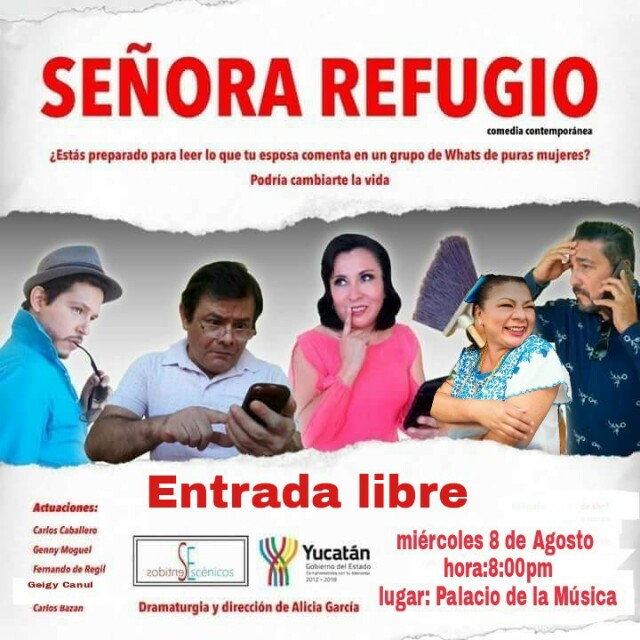 Obra que protagonizará Alicia García “X’pet” se presentará en el Palacio de la Música. Mérida, Yucatán- La crisis matrimonial de una pareja que ha caído en la monotonía será abordada en el montaje Señora Refugio, escrita y dirigida por la actriz Alicia García Rosado “X’pet”, que se presentará en la …