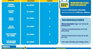 Personas de 40 a 59 años de edad de Mérida comenzarán a recibir la cuarta dosis de refuerzo contra el Coronavirus. -Esta nueva etapa se llevará a cabo del 20 al 25 de junio y se aplicará la dosis de la farmacéutica AstraZeneca. – Se informa a la población que …