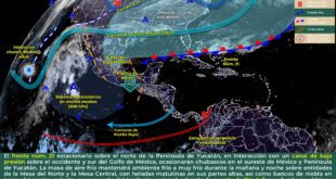 MÉRIDA, Yuc., 12 de enero 2022.- En las próximas 24 horas, se prevé cielo mayormente despejado a parcialmente nublado, con probabilidad de lloviznas y chubascos aislados. Temperaturas cálidas a calurosas durante el día y templadas a cálidas al amanecer. Durante este día se prevé que el frente no. 21 se …