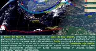 MÉRIDA, Yuc., 12 de noviembre 2021.- En las próximas 24 horas, se prevé cielo medio nublado a nublado, con probabilidad intervalos de chubascos con lluvia puntualmente fuerte. Temperaturas cálidas a calurosas durante el día y templadas durante la madrugada. Se prevé que durante este día, el ingreso de aire húmedo …