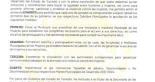 A crear, en los primeros días de sus administraciones, las instancias o Institutos Municipales de la Mujer para contribuir al combate de la violencia contra este sector. -Vila Dosal llamó a fortalecer técnica y presupuestalmente dichas dependencias; establecer vinculación para garantizar servicios especializados e implementar el eje transversal “Igualdad de …
