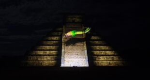 _Invitan a disfrutar del espectáculo nocturno a los pies de la pirámide El Castillo._ Tinum, Yucatán, a 29 de enero de 2026.- Antes de viajar al pasado con una proyección audiovisual de alto nivel, el imponente Templo de Kukulcán, en el corazón de Chichén Itzá, da la bienvenida a las …