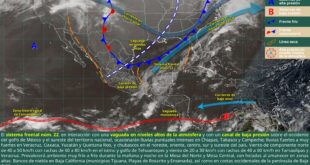 MÉRIDA, Yuc., 19 de diciembre 2025.- Durante las próximas 24 horas se esperan chubascos y tormentas vespertinas en la región, debido a la interacción de una vaguada sobre el sureste del país con el ingreso de humedad proveniente del golfo de México y el mar Caribe, así como condiciones de …