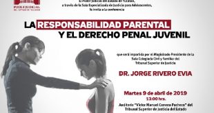 El Poder Judicial del Estado de Yucatán realizará la conferencia “Responsabilidad parental y el derecho penal juvenil” el día de mañana martes 9 de abril a las 13:00 horas en el auditorio “Víctor Manuel Cervera Pacheco” del Tribunal Superior de Justicia. La conferencia será impartida por el Magistrado Presidente de …