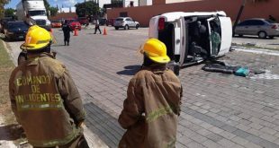 Esquiva un auto que se le cruza y se sale del camino “Estuve a dos pulgadas de chocar”, dijo el residente americano David Masciangelo, quien para evitar la colisión con otro auto hizo una maniobra, pero montó la banqueta y volcó el Mustang deportivo que manejaba; salió ileso del accidente. …