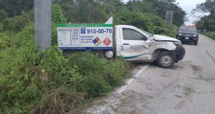 Federico Azul/Yucatán al Instante Celestún, Yuc. a 19 de octubre 2024.- El conductor de una camioneta repartidora de gas LP, corrió con suerte, luego de estrellarse con la base de un señalamiento tipo bandera del tramo que enlaza este puerto con Kinchil. Según los hechos, el repartidor que hasta eso …