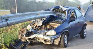 Un automóvil Chevy color azul quedó completamente atravesado por la valla metálica de contención en vía la Mérida-Cancún. En el vehículo viajaban tres jóvenes oriundos de Hocabá y el hecho se registró alrededor de las 2 de la madrugada de este domingo Presuntamente el automóvil circulaba a exceso de velocidad, …