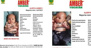 MÉRIDA, Yuc., 11 de diciembre 2023.- La Fiscalía General del Estado activó sendas Alerta Amber Yucatán para solicitar el apoyo de la ciudadanía a fin de dar con la búsqueda y localización de dos bebés sin registro, de 1 mes de edad, desaparecidos en Mérida, Yucatán. Aunque no se precisa, …