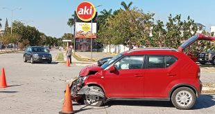 Federico Azul/Yucatán al Instante MERIDA, Yuc., 09 de marzo 2025.- Vaya choque protagonizo la conductora de una camioneta tipo Volkswagen Tiguan, pues cuando transitaba sobre la calle 19 del fraccionamiento Altabrisa llegó al cruce de la Avenida el motociclista y se paso un señalamiento de disco (alto) para ser impactada …