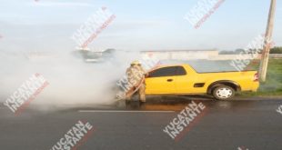 Corresponsalías/Yucatán al Instante UMÁN, Yuc., 28 de noviembre de 2019.- Ardiente amanecer sobrellevó una camioneta Tornado con placas YP-0919-B, color amarillo, tras incendiarse en el kilómetro 6+500 de la vía federal Mérida – Umán. Los hechos ocurrieron cuando José Martín Puc Noh, de 34 años, observó que debajo del cofre …